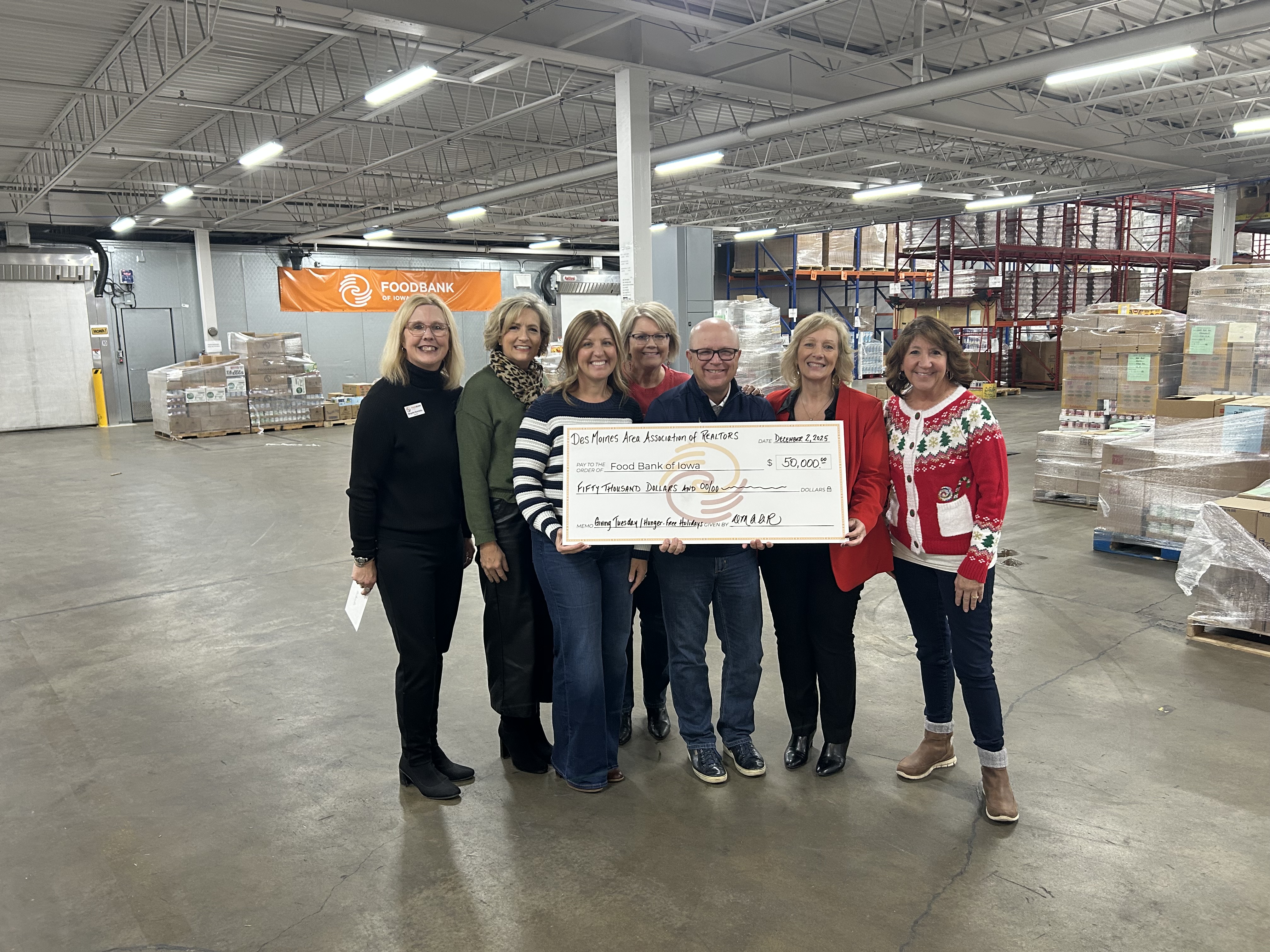 The Des Moines Area Association of REALTORS® (DMAAR) is proud to announce a $50,000 donation to the Food Bank of Iowa, reinforcing the association’s ongoing commitment to supporting the communities its members serve.